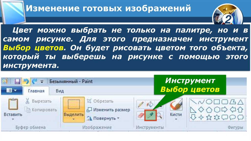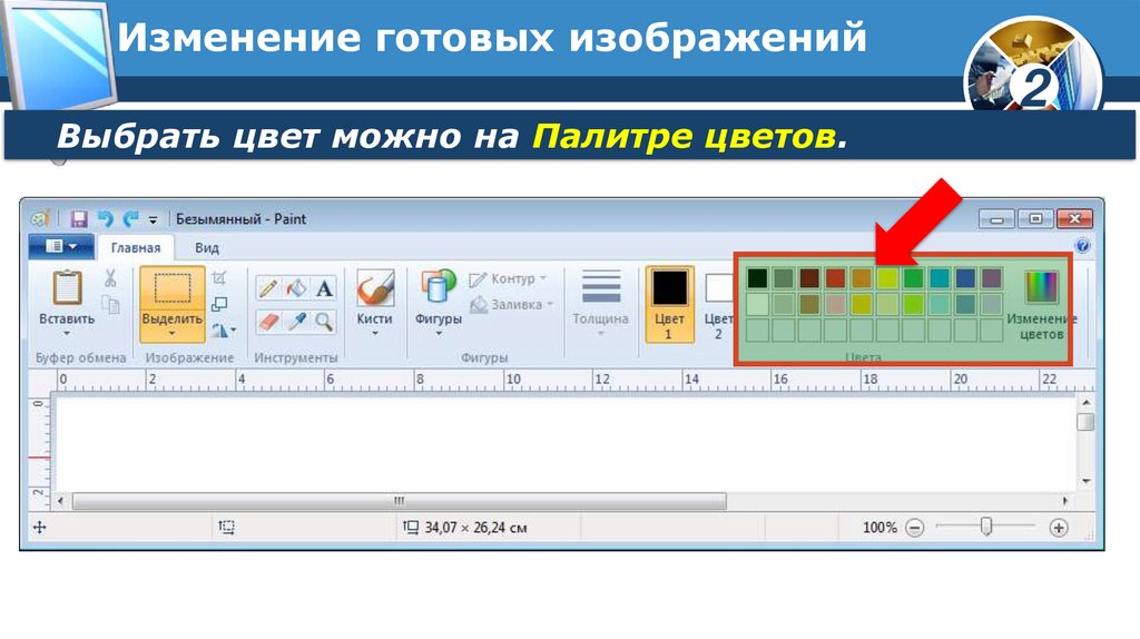 Изменение готовых изображенийВыбрать цвет можно на Палитре цветов.