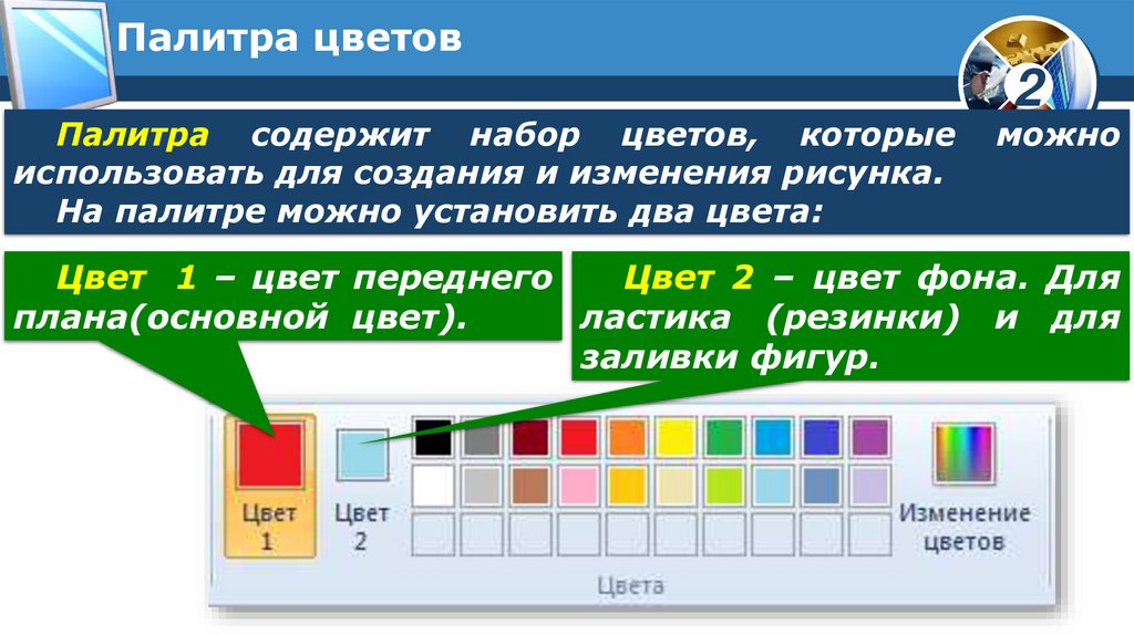 Палитра цветовПалитра содержит набор цветов, которые