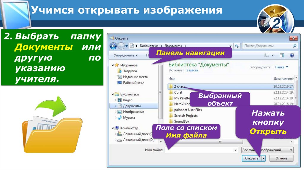 Учимся открывать изображения2. Выбрать папку