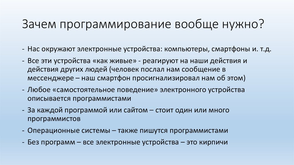 Зачем программирование вообще нужно?- Нас окружают электронные устройства: компьютеры, смартфоны и. т.д.