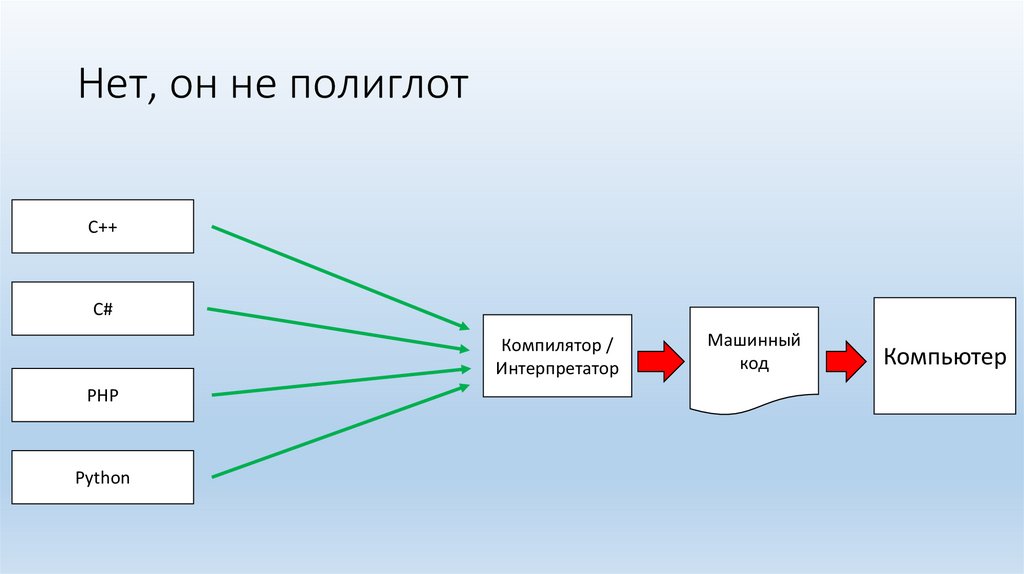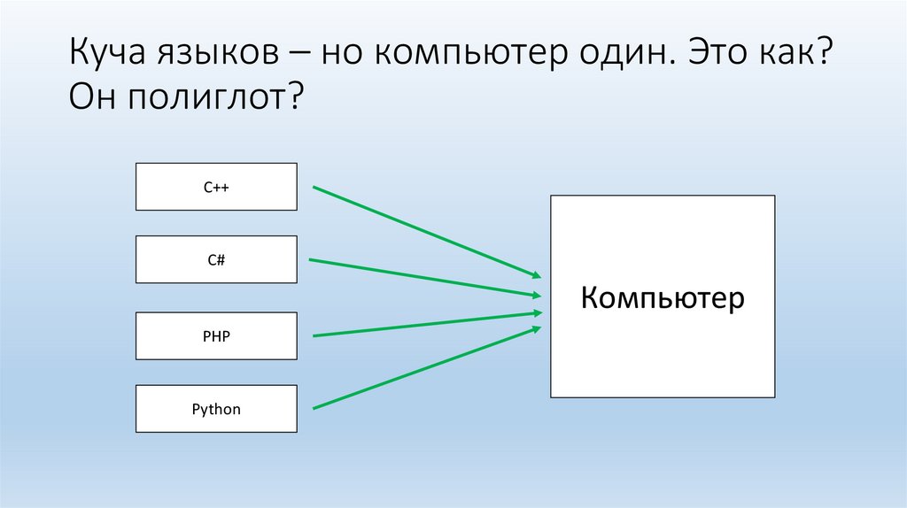Куча языков – но компьютер один. Это как?Он полиглот?