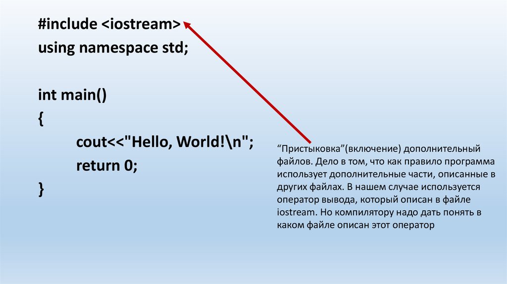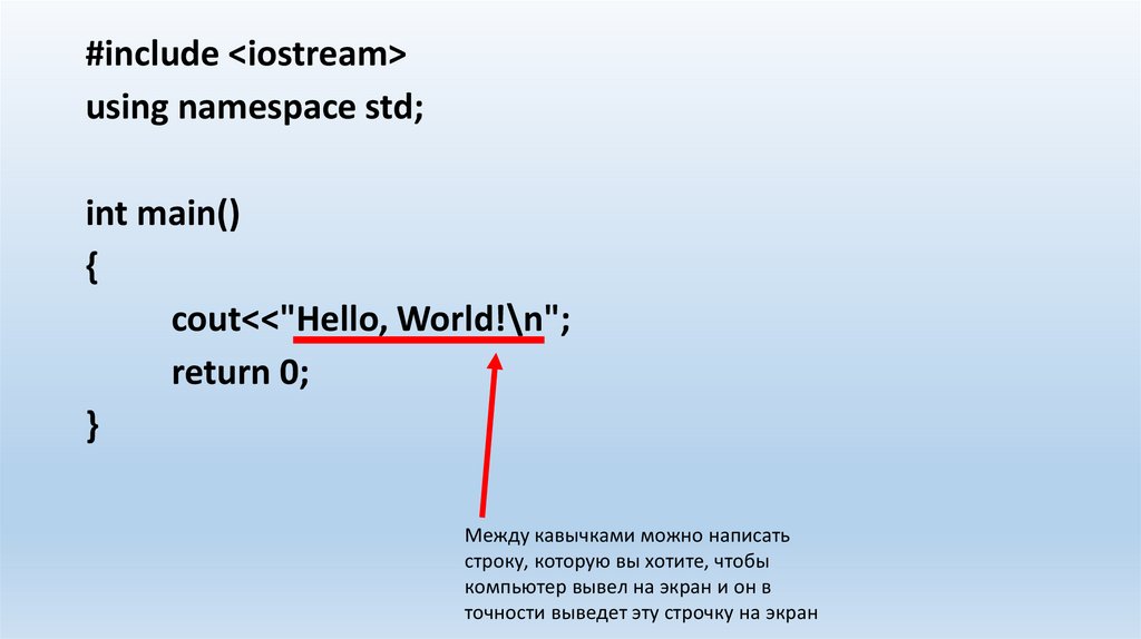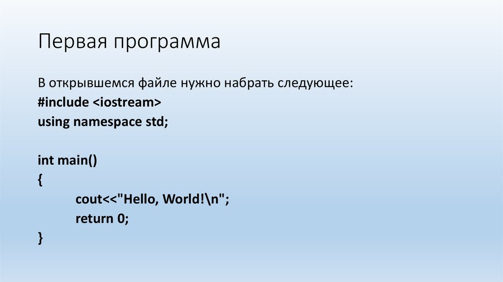 Первая программаВ открывшемся файле нужно набрать следующее: