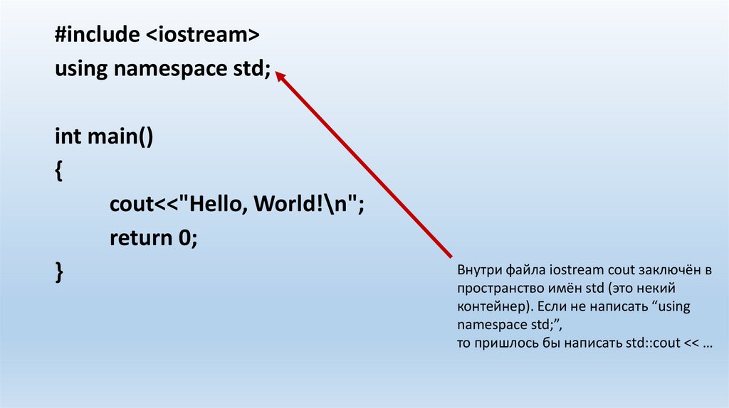 то пришлось бы написать std::cout << …