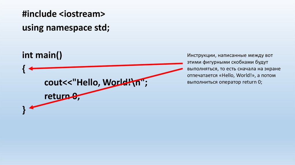 выполниться оператор return 0;