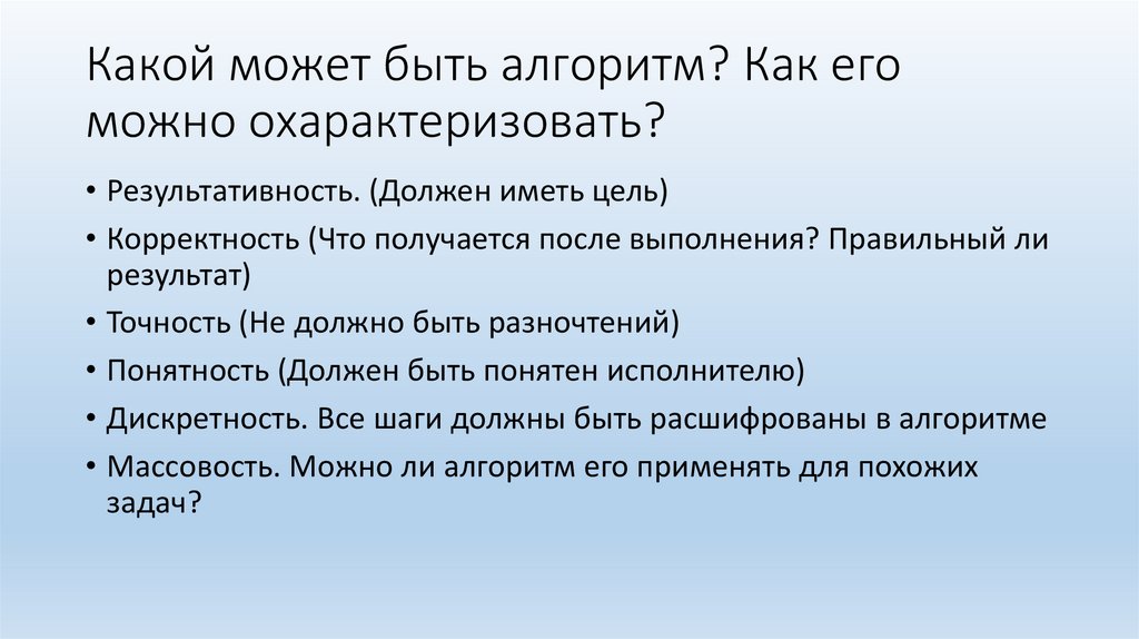 Какой может быть алгоритм? Как егоможно охарактеризовать?