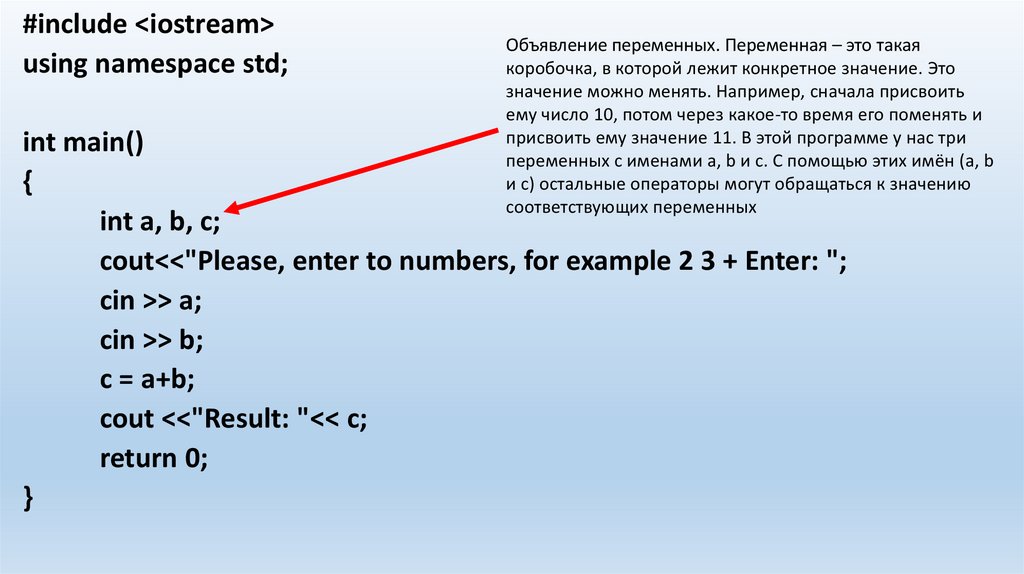 переменных с именами a, b и с. С помощью этих имён (a, b