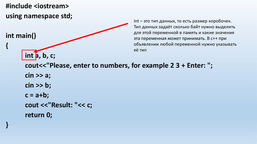 int – это тип данных, то есть размер коробочек.