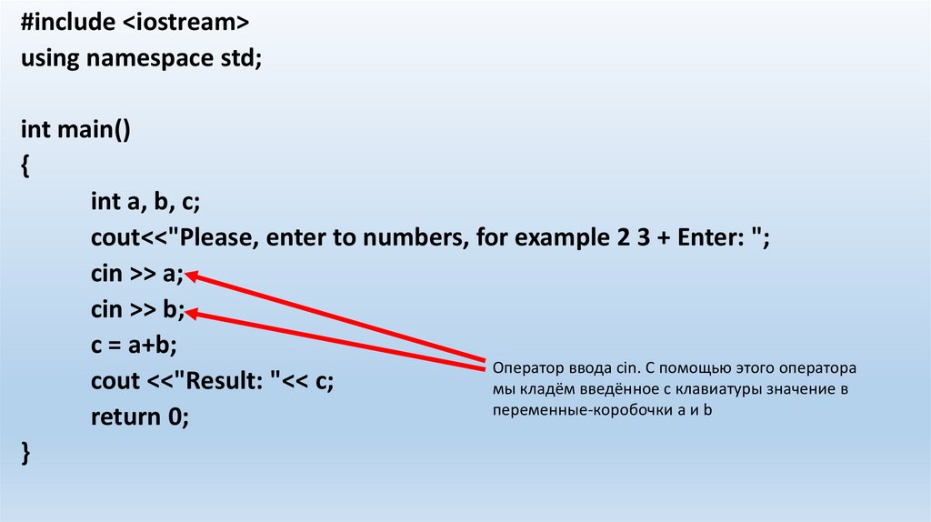 Оператор ввода cin. С помощью этого оператора