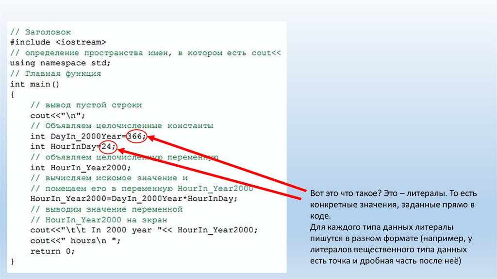 Вот это что такое? Это – литералы. То естьконкретные значения, заданные прямо в