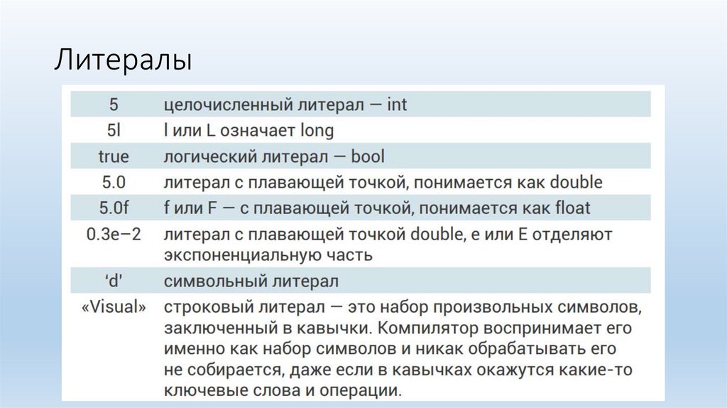 Для каждого типа данных литералы