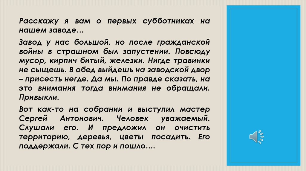 Расскажу я вам о первых субботниках нанашем заводе…