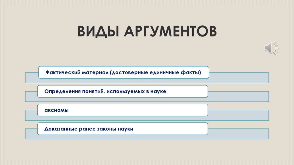 ВИДЫ АРГУМЕНТОВФактический материал (достоверные единичные факты)