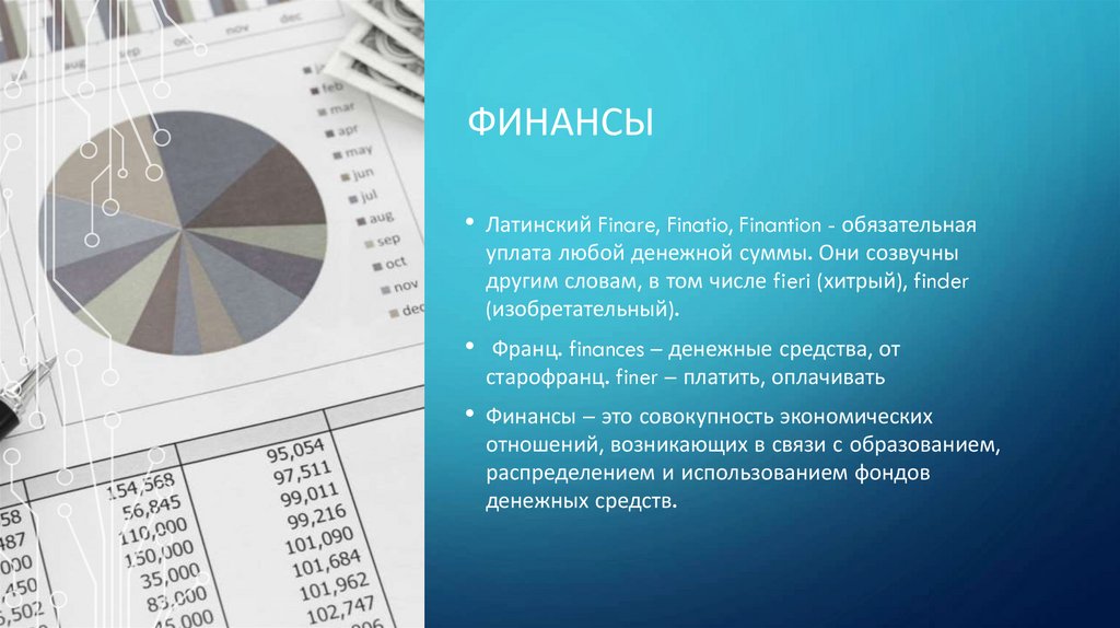 ФИНАНСЫ• Латинский Finare, Finatio, Finantion - обязательная