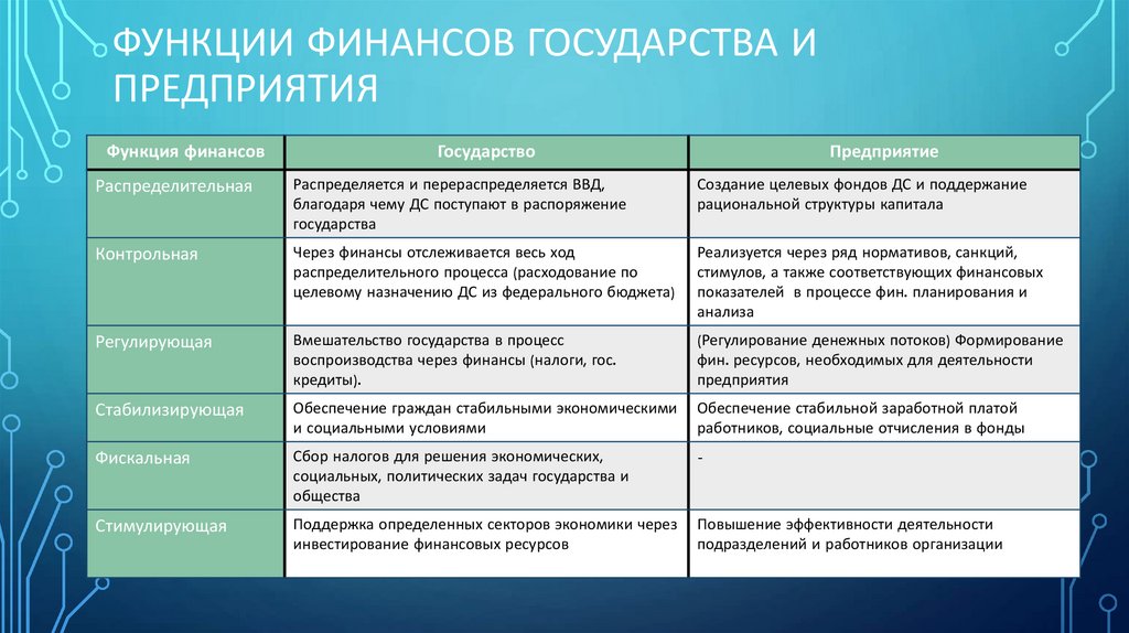 ФУНКЦИИ ФИНАНСОВ ГОСУДАРСТВА ИПРЕДПРИЯТИЯ