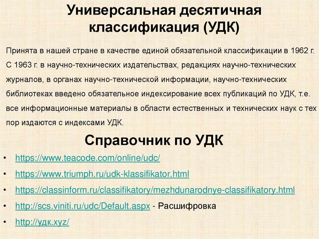 • https://www.triumph.ru/udk-klassifikator.html