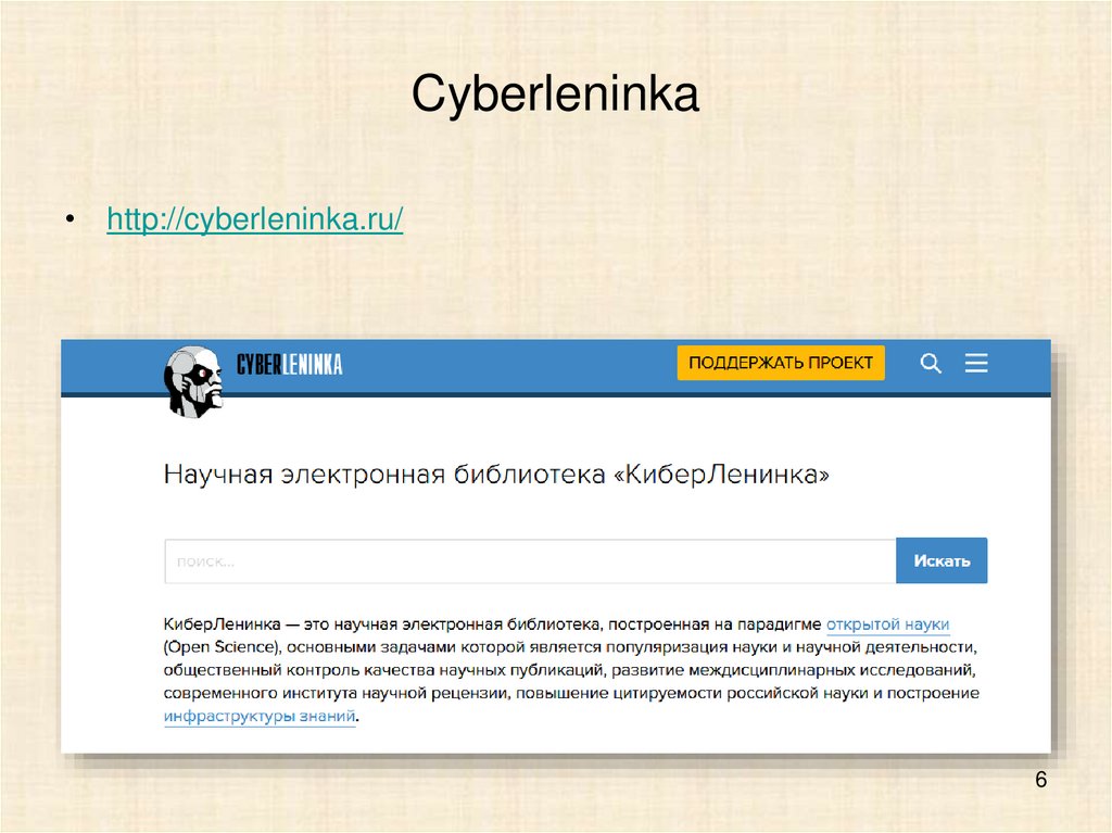 Cyberleninka• http://cyberleninka.ru/