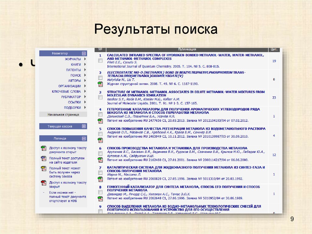 • В основном журнальные статьи, патенты, авторефераты, а