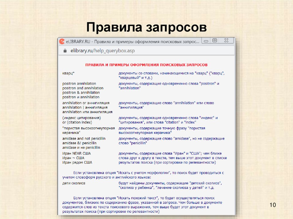 Правила запросов10