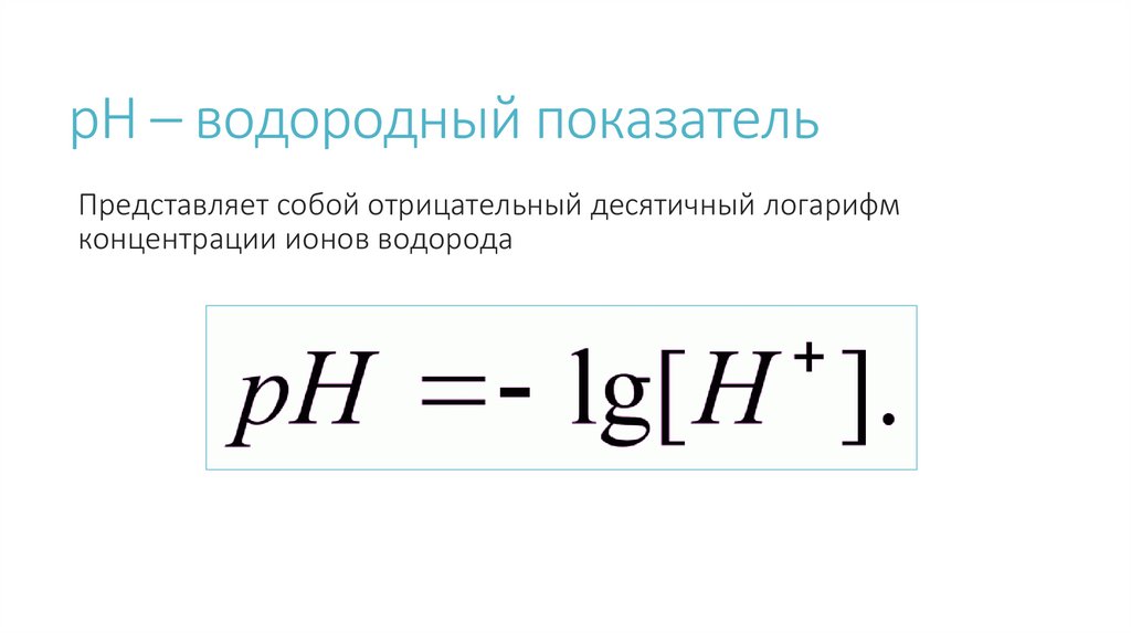 рН – водородный показательПредставляет собой отрицательный десятичный логарифм