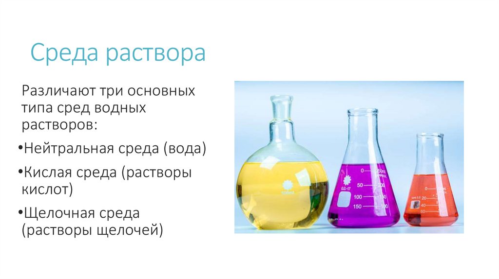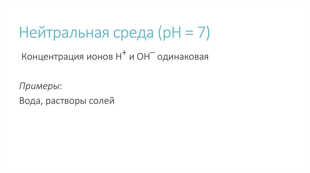 Нейтральная среда (рН = 7)Концентрация ионов Н+ и ОН– одинаковая