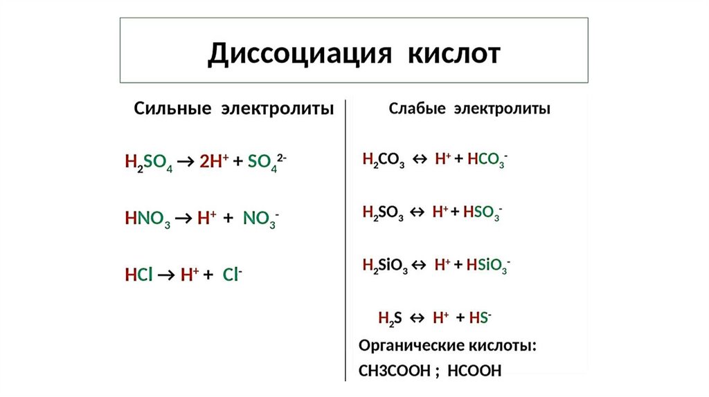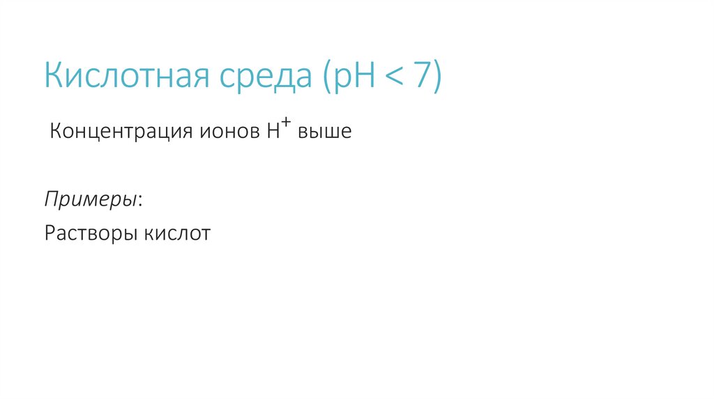 Кислотная среда (рН < 7)Концентрация ионов Н+ выше
