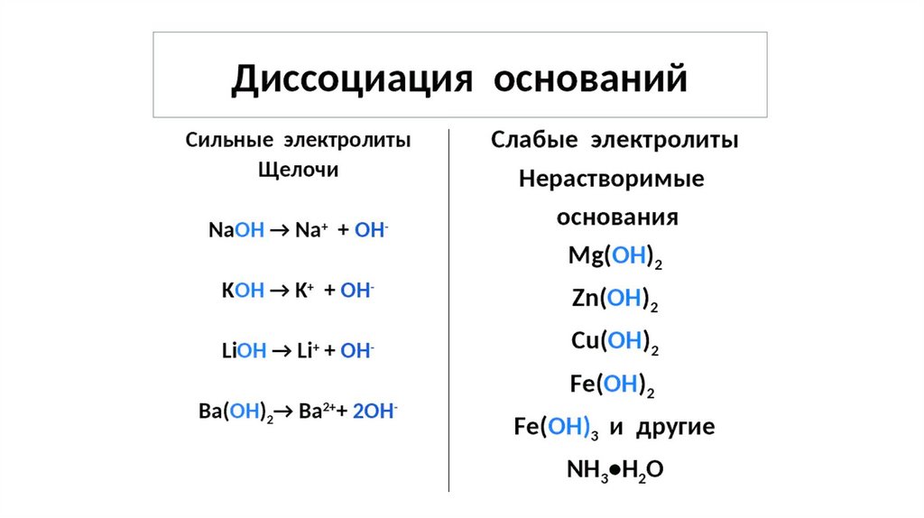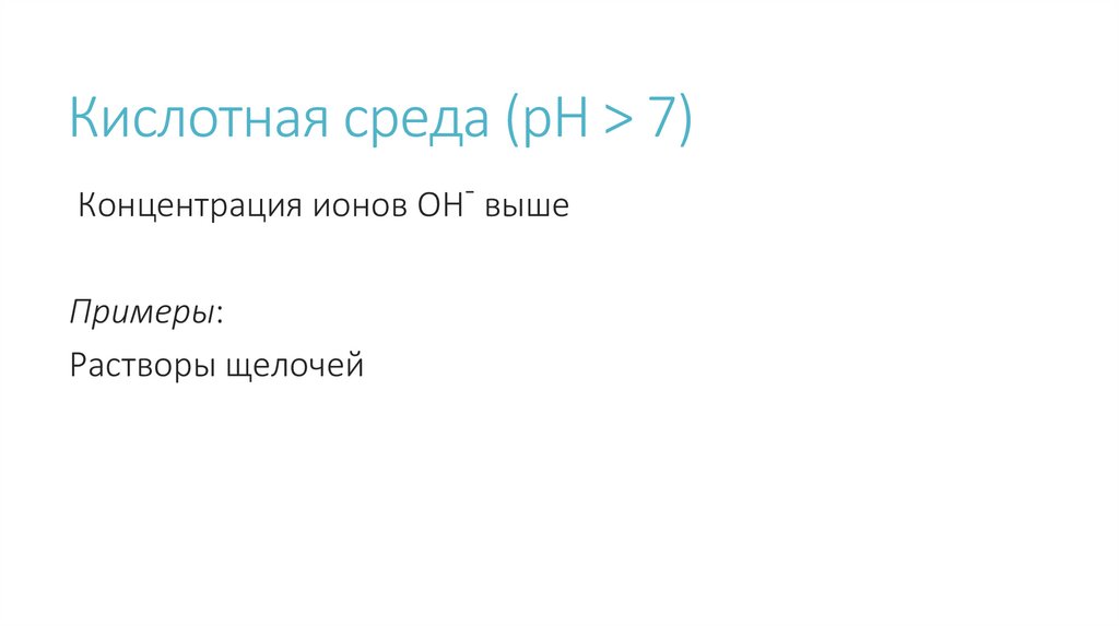 Кислотная среда (рН > 7)Концентрация ионов OН- выше