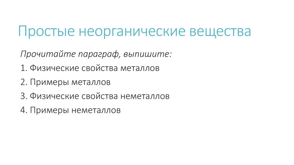 Простые неорганические веществаПрочитайте параграф, выпишите: