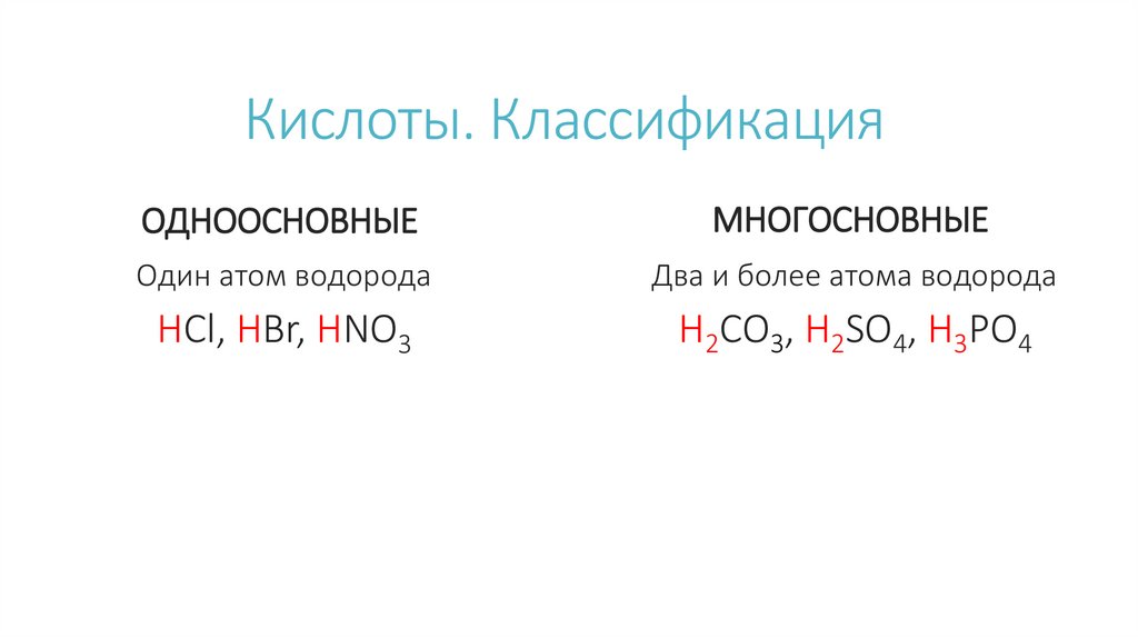 Кислоты. КлассификацияОДНООСНОВНЫЕ