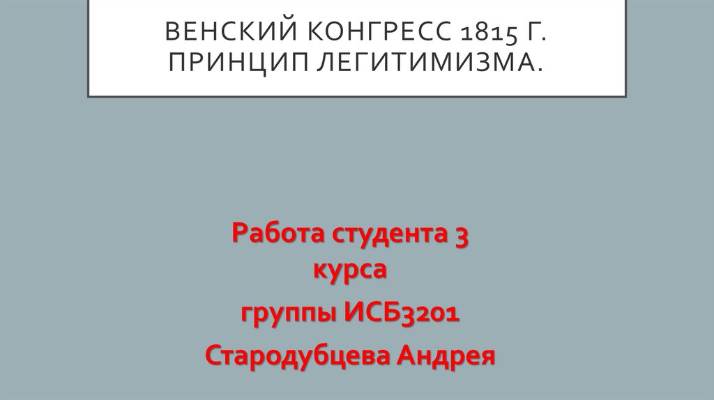 ВЕНСКИЙ КОНГРЕСС 1815 Г.ПРИНЦИП ЛЕГИТИМИЗМА.