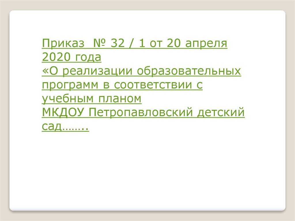 Приказ № 32 / 1 от 20 апреля2020 года