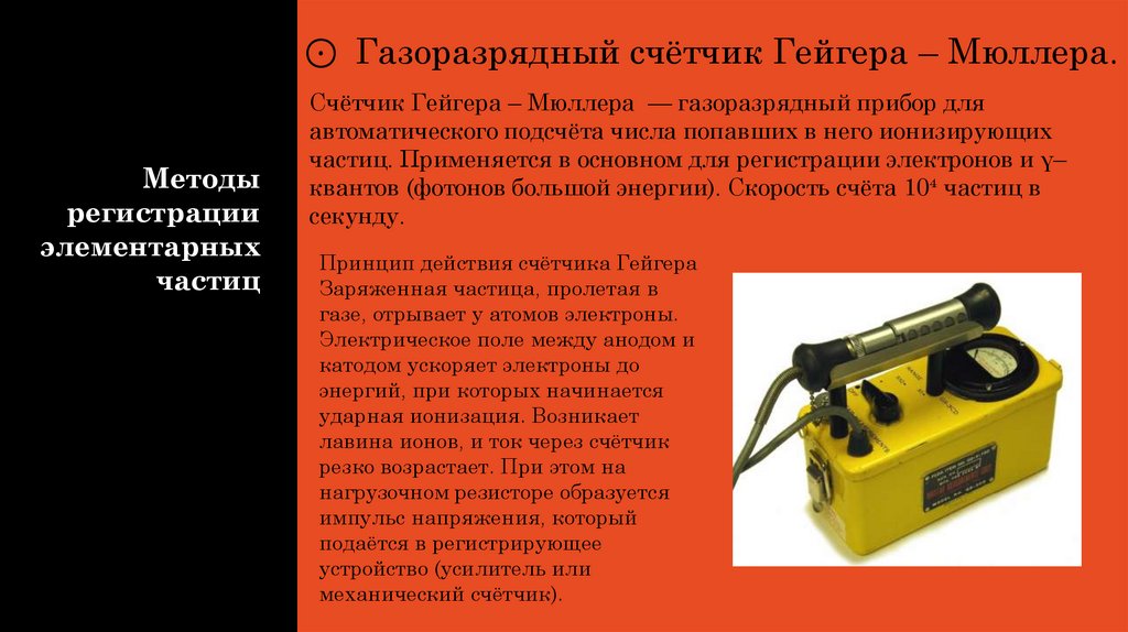 ⊙ Газоразрядный счётчик Гейгера – Мюллера.Методы