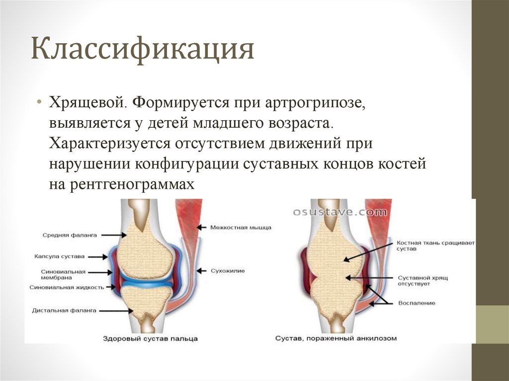 Классификация• Хрящевой. Формируется при артрогрипозе,