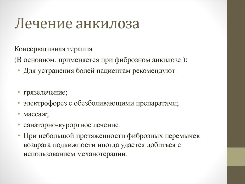 Лечение анкилозаКонсервативная терапия