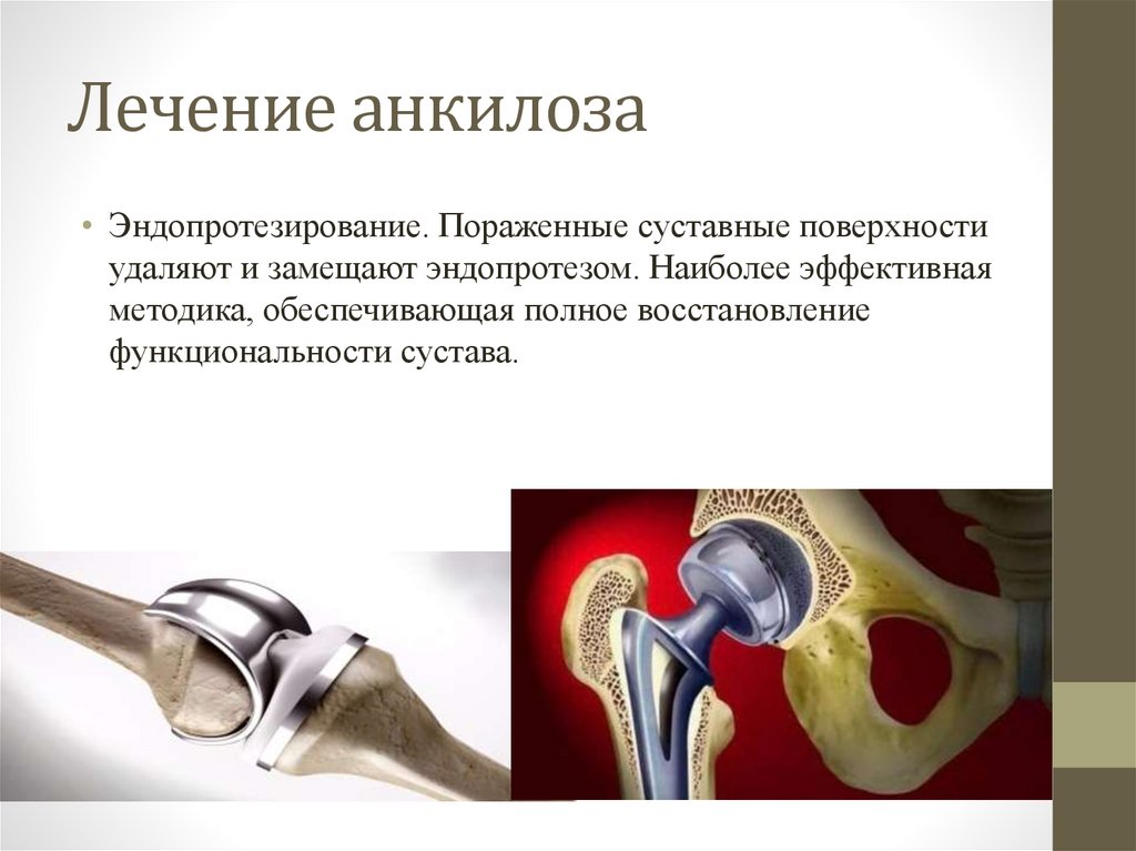 Лечение анкилоза• Эндопротезирование. Пораженные суставные поверхности