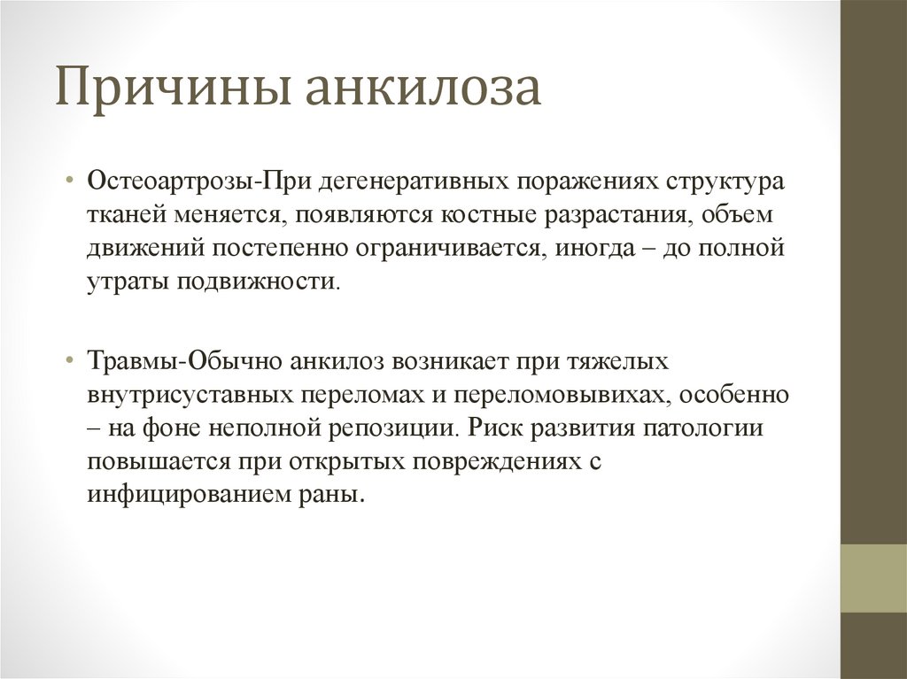 следующие основные причины анкилоза: