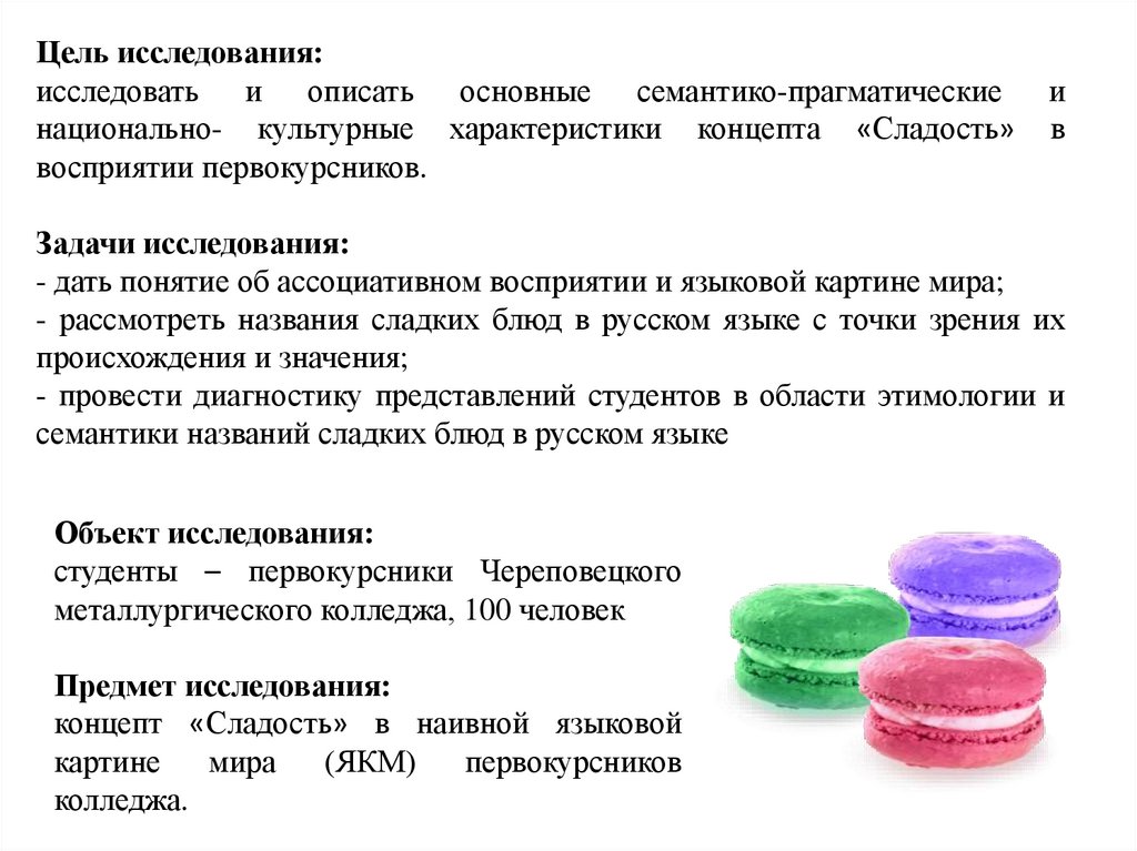 - рассмотреть названия сладких блюд в русском языке с точки зрения их