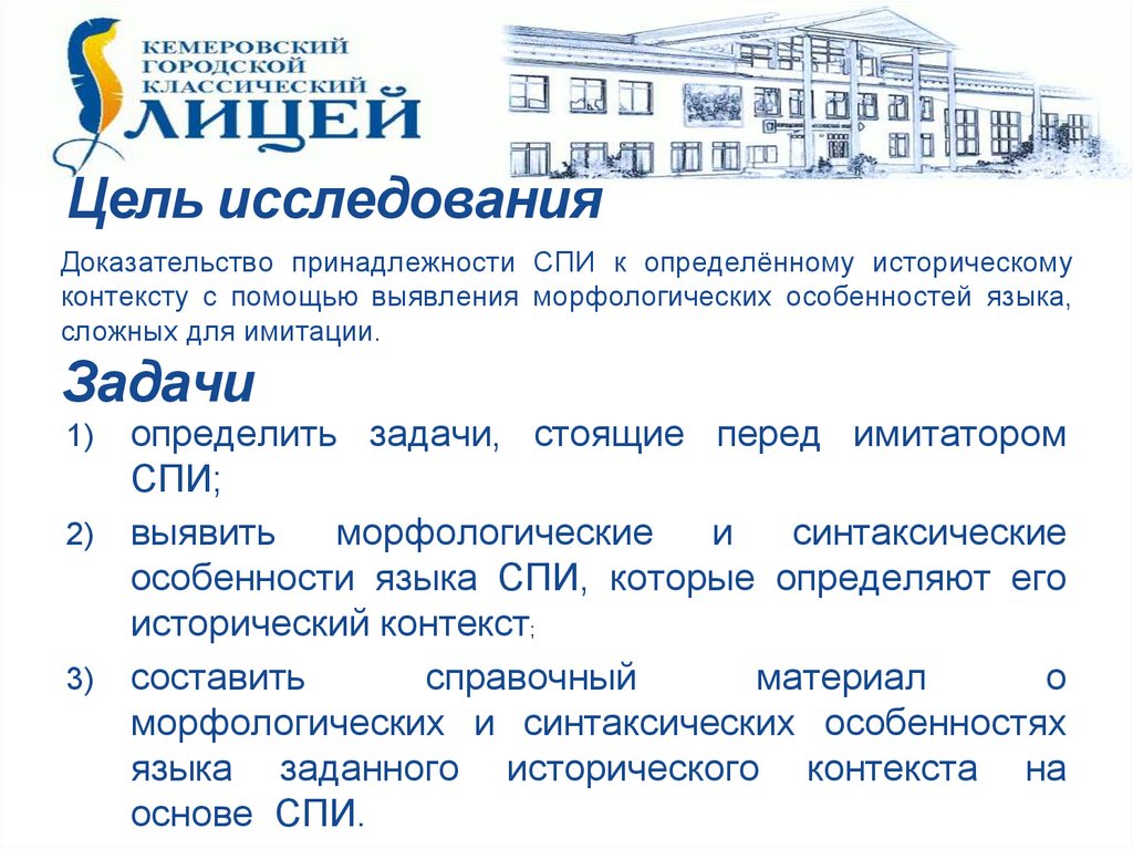 Цель исследованияДоказательство принадлежности СПИ к определённому историческому