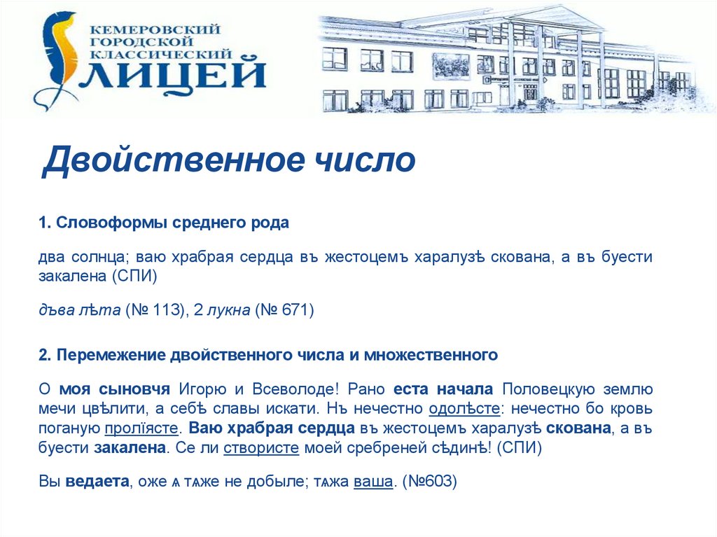 2. Перемежение двойственного числа и множественного