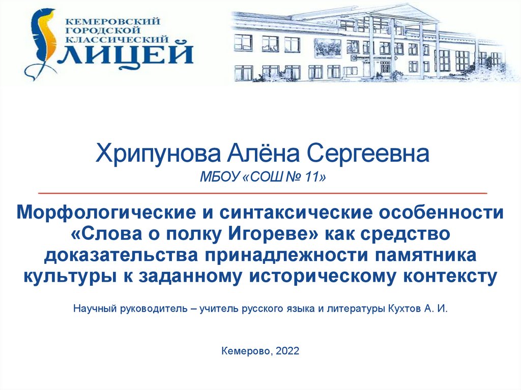 Научный руководитель – учитель русского языка и литературы Кухтов А. И.