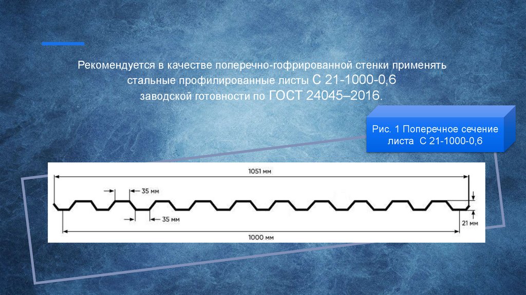 Рекомендуется в качестве поперечно-гофрированной стенки применятьстальные профилированные листы С 21-1000-0,6