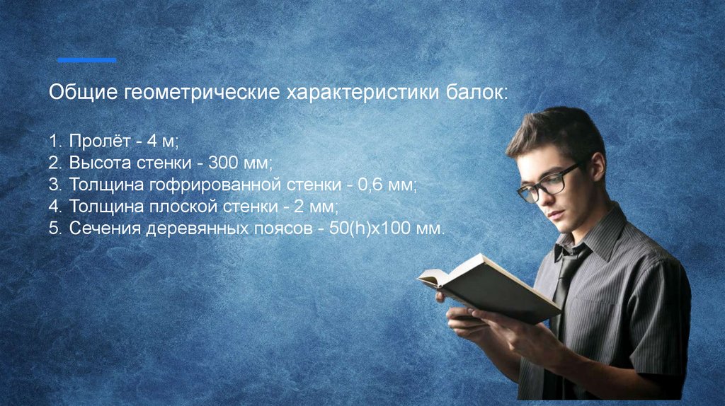 Общие геометрические характеристики балок:1. Пролёт - 4 м;