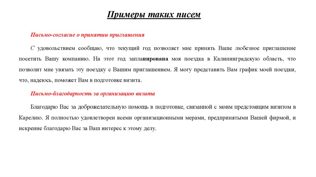 Примеры таких писемПисьмо-согласие о принятии приглашения