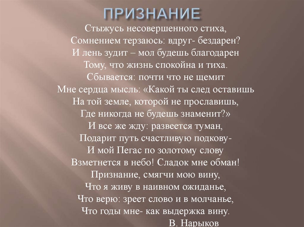 Стыжусь несовершенного стиха,Сомнением терзаюсь: вдруг- бездарен?