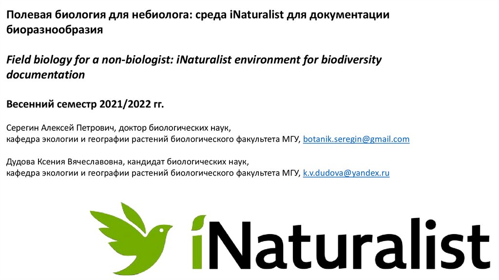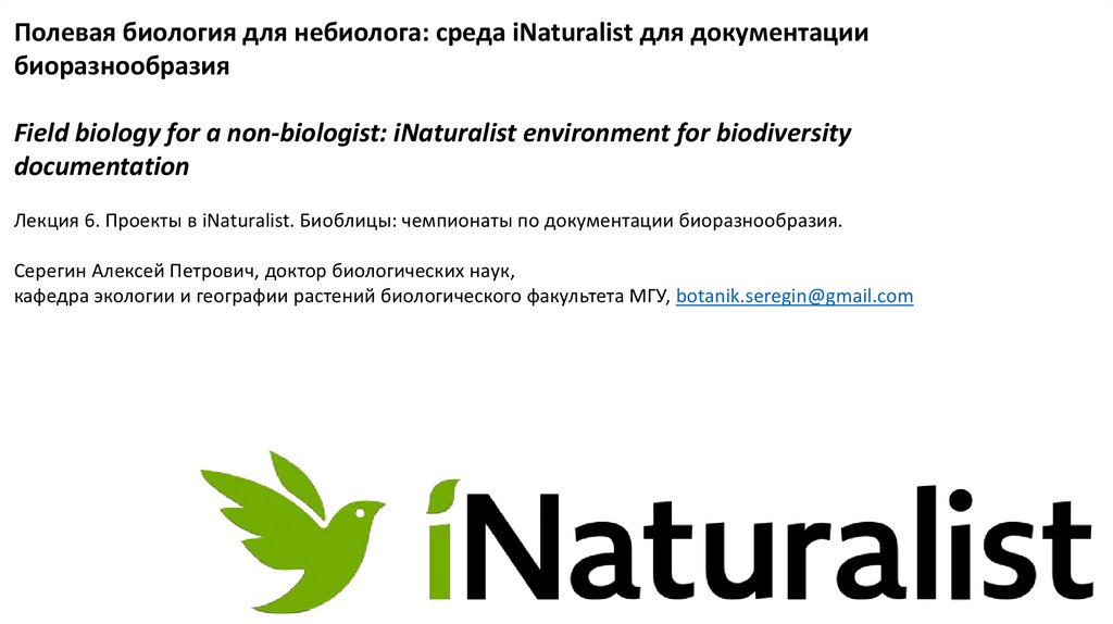 Лекция 6. Проекты в iNaturalist. Биоблицы: чемпионаты по документации биоразнообразия.