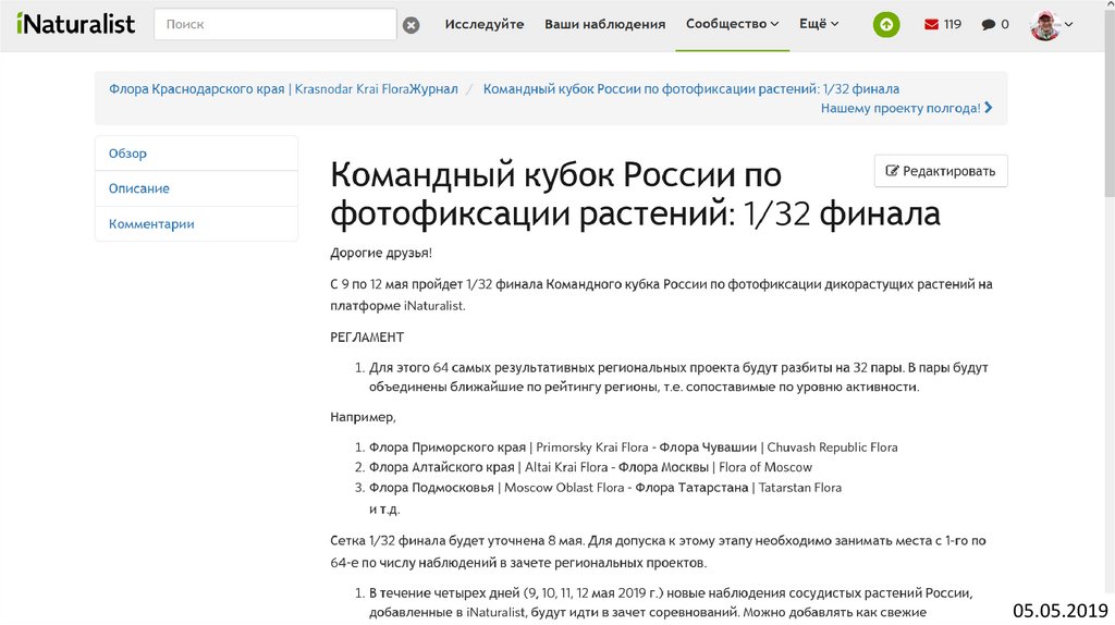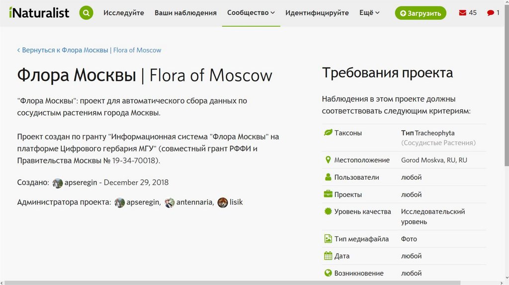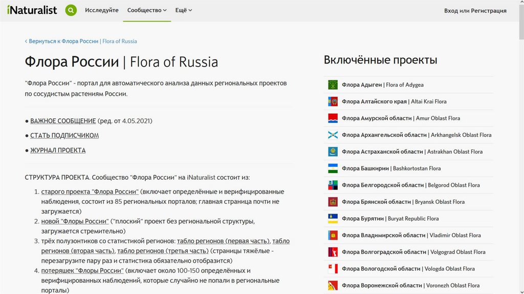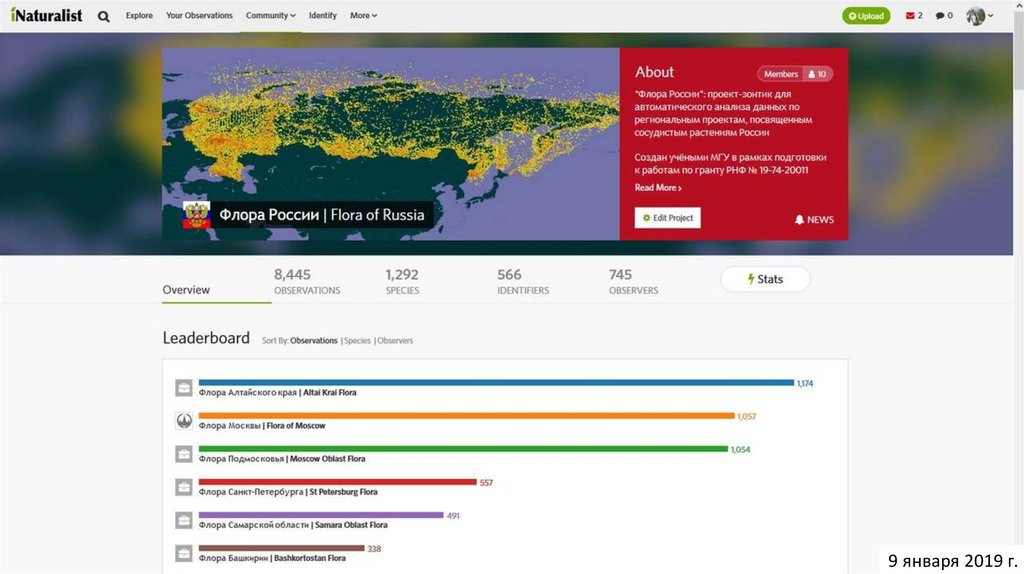 Старт проекта «Флора России»на iNaturalist (начало 2019 г.)