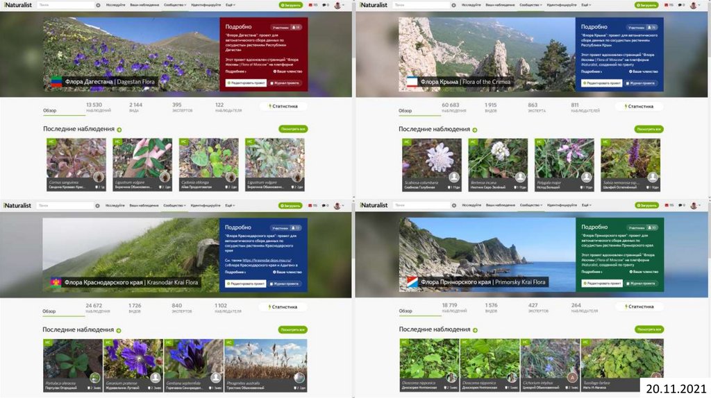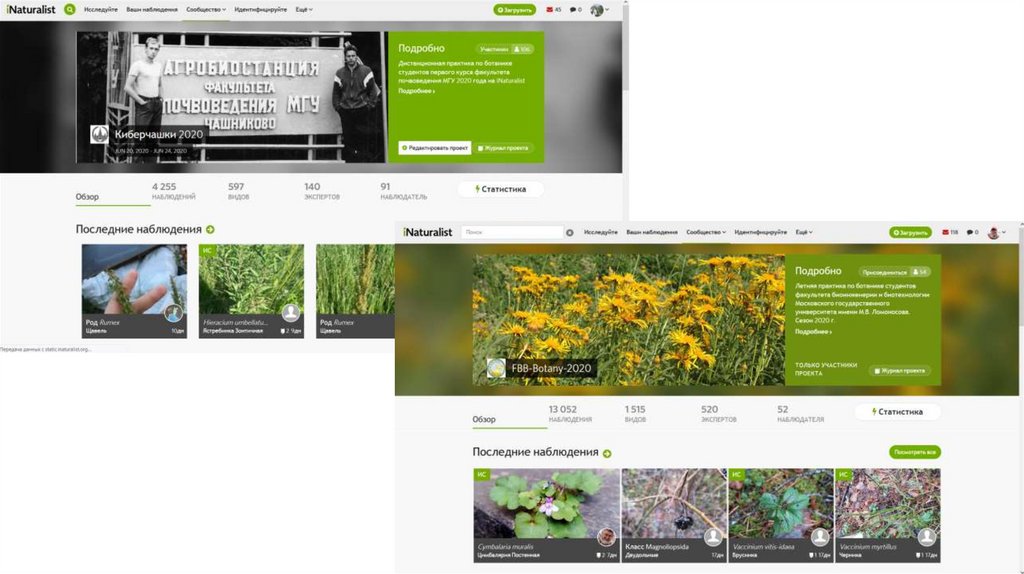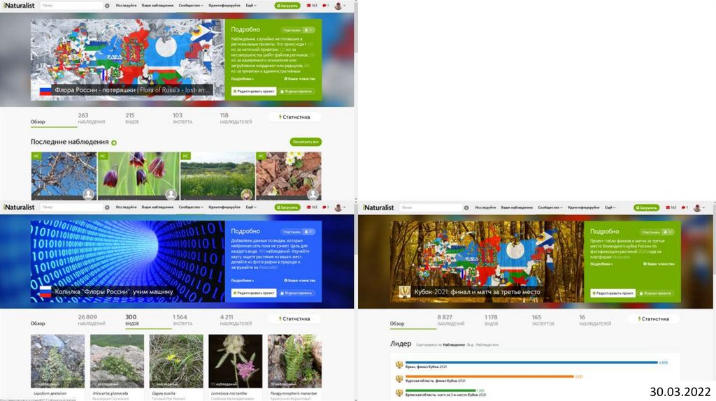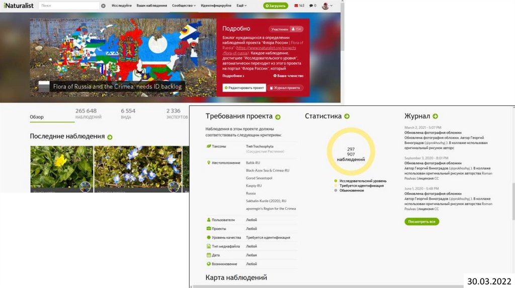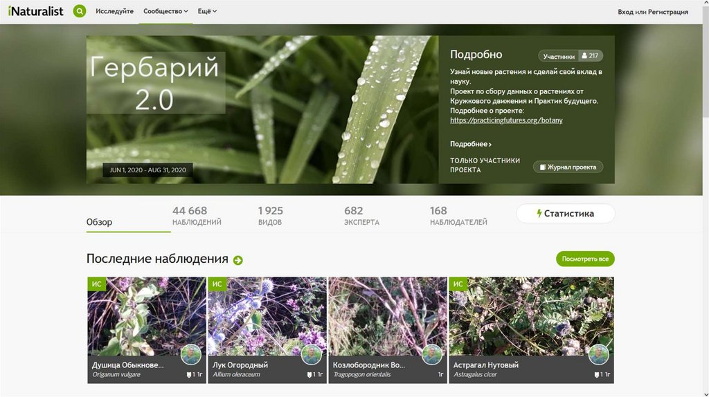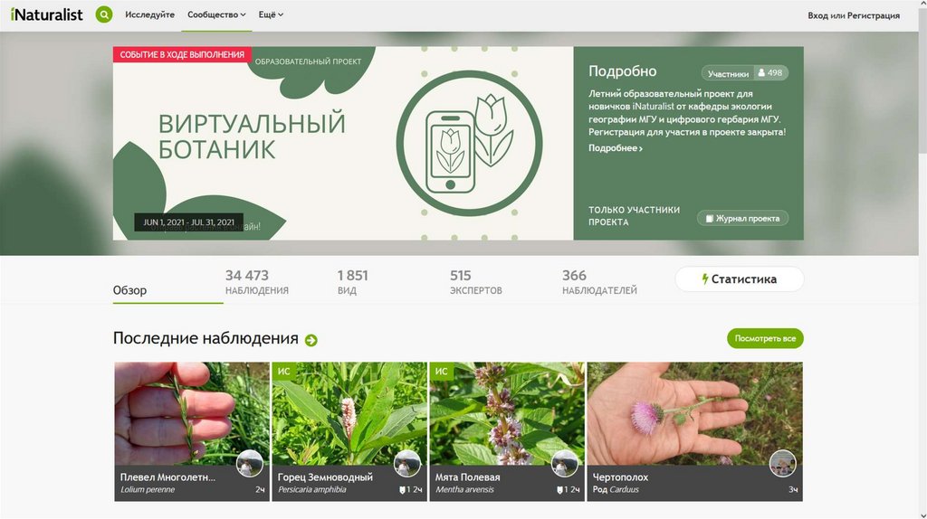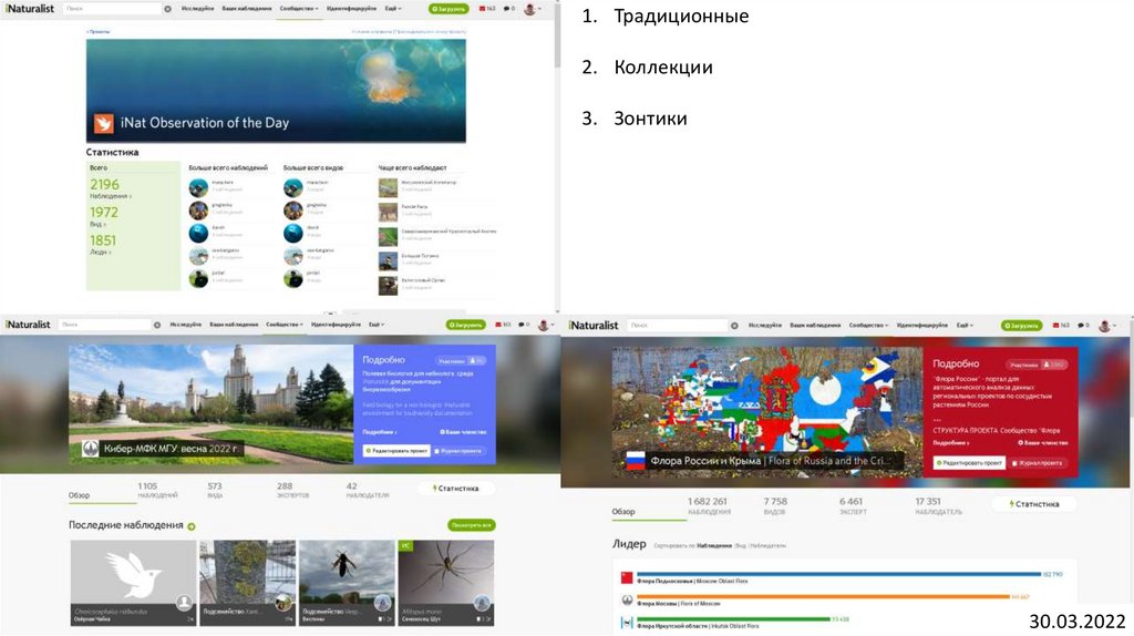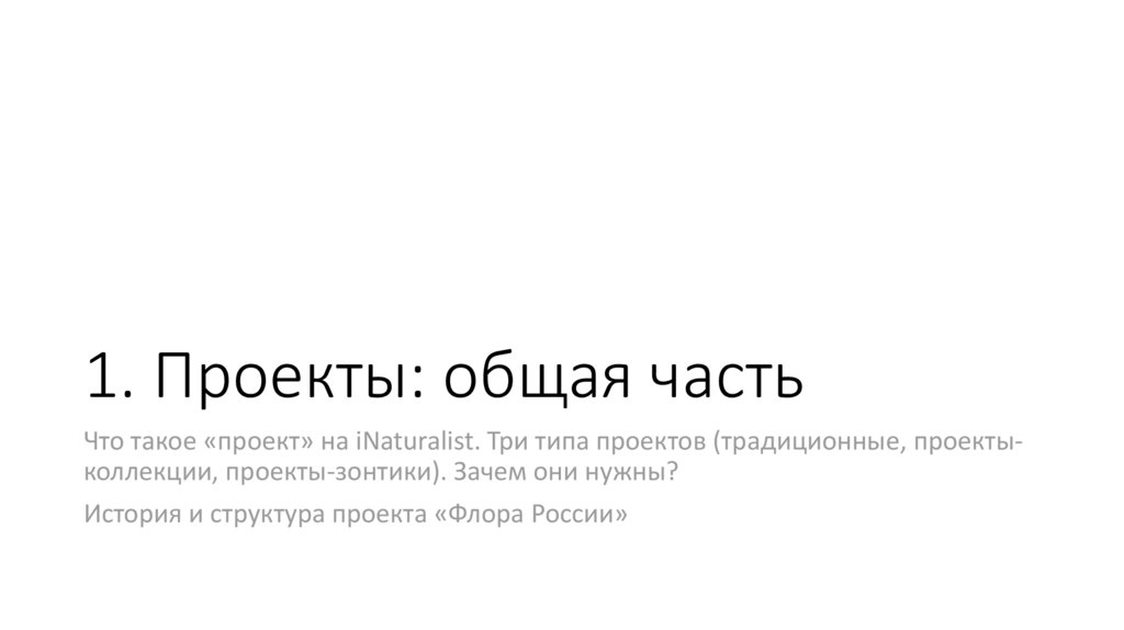 1. Проекты: общая частьЧто такое «проект» на iNaturalist. Три типа проектов (традиционные, проектыколлекции, проекты-зонтики). Зачем они нужны?