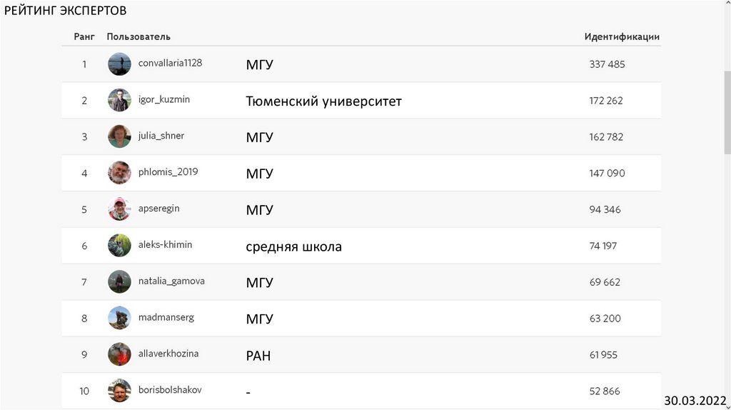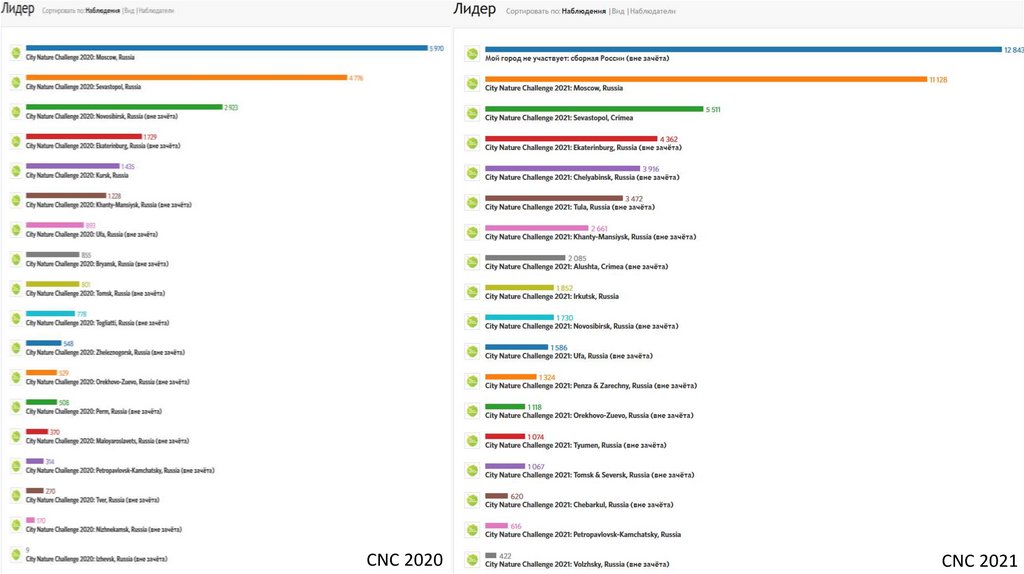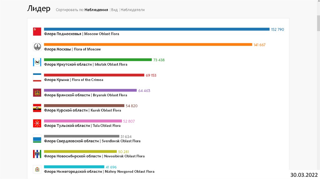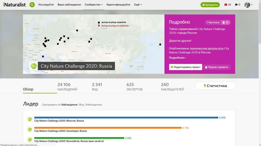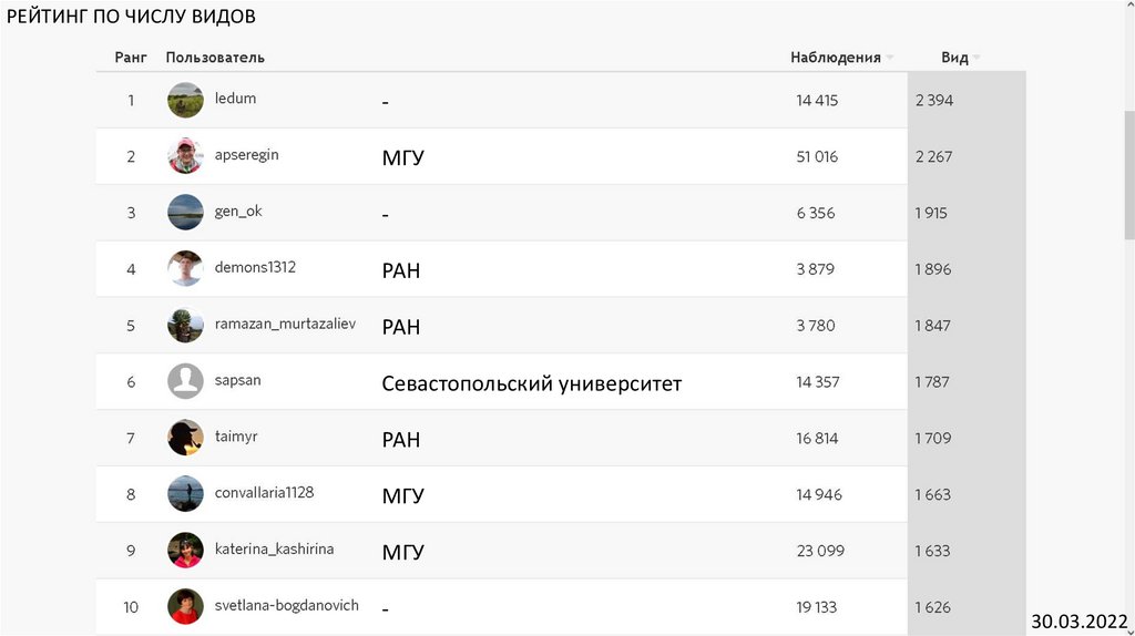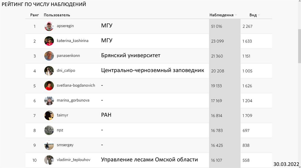 Топ-наблюдатели проекта «ФлораРоссии» на iNaturalist (число наблюдений)