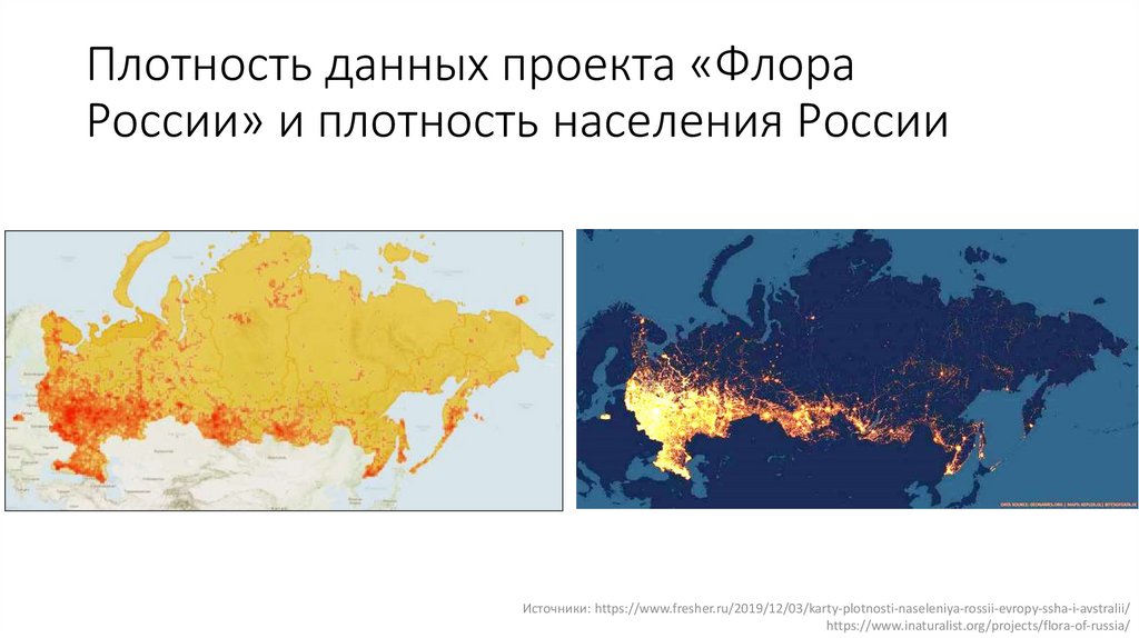 Плотность данных проекта «ФлораРоссии» и плотность населения России
