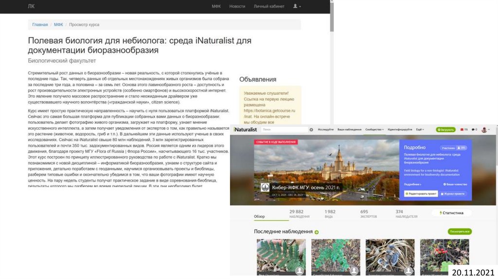 Полевая биология для небиолога: среда iNaturalist для документациибиоразнообразия