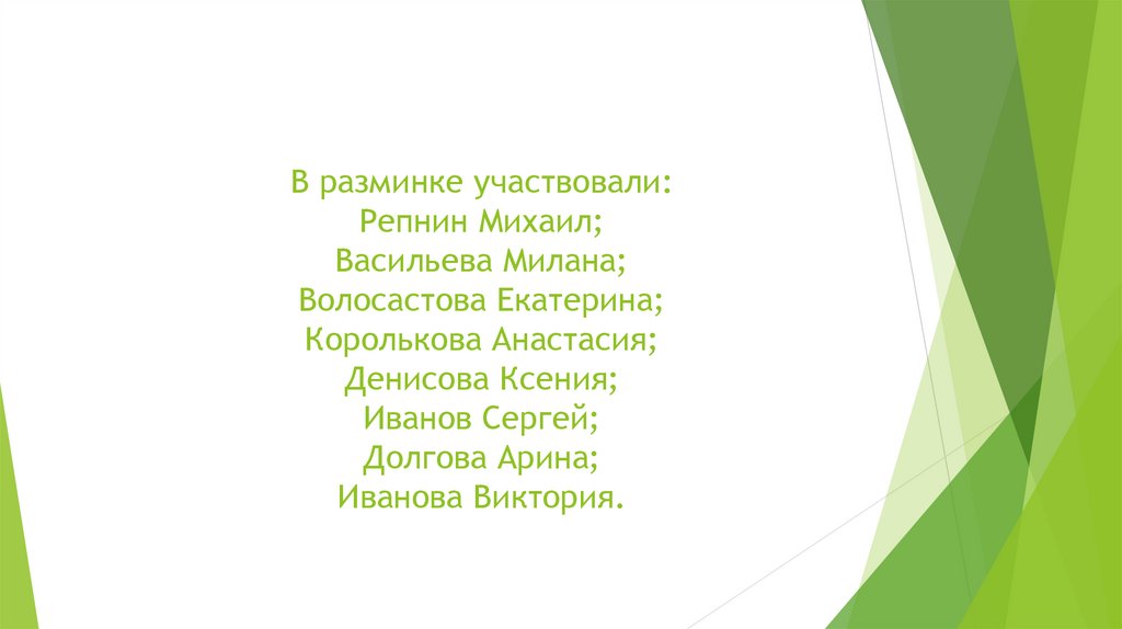 В разминке участвовали:Репнин Михаил;